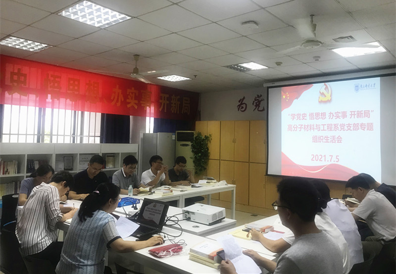 在党的百年华诞之际,轮盘游戏 高分子材料与工程系党支部于2021年7月5日组织全体党员召开“学党史、悟思想、办实事、开新局”专题组织生活会,认真贯彻“学史明理、学史增信、学史崇德、学史力行”要求,开展党性分析,交流学习体会,引导党员进一步深刻领会开展党史学习教育的重大意义,结合自身实际查找差距不足,奋力开新局、奋进新征程。