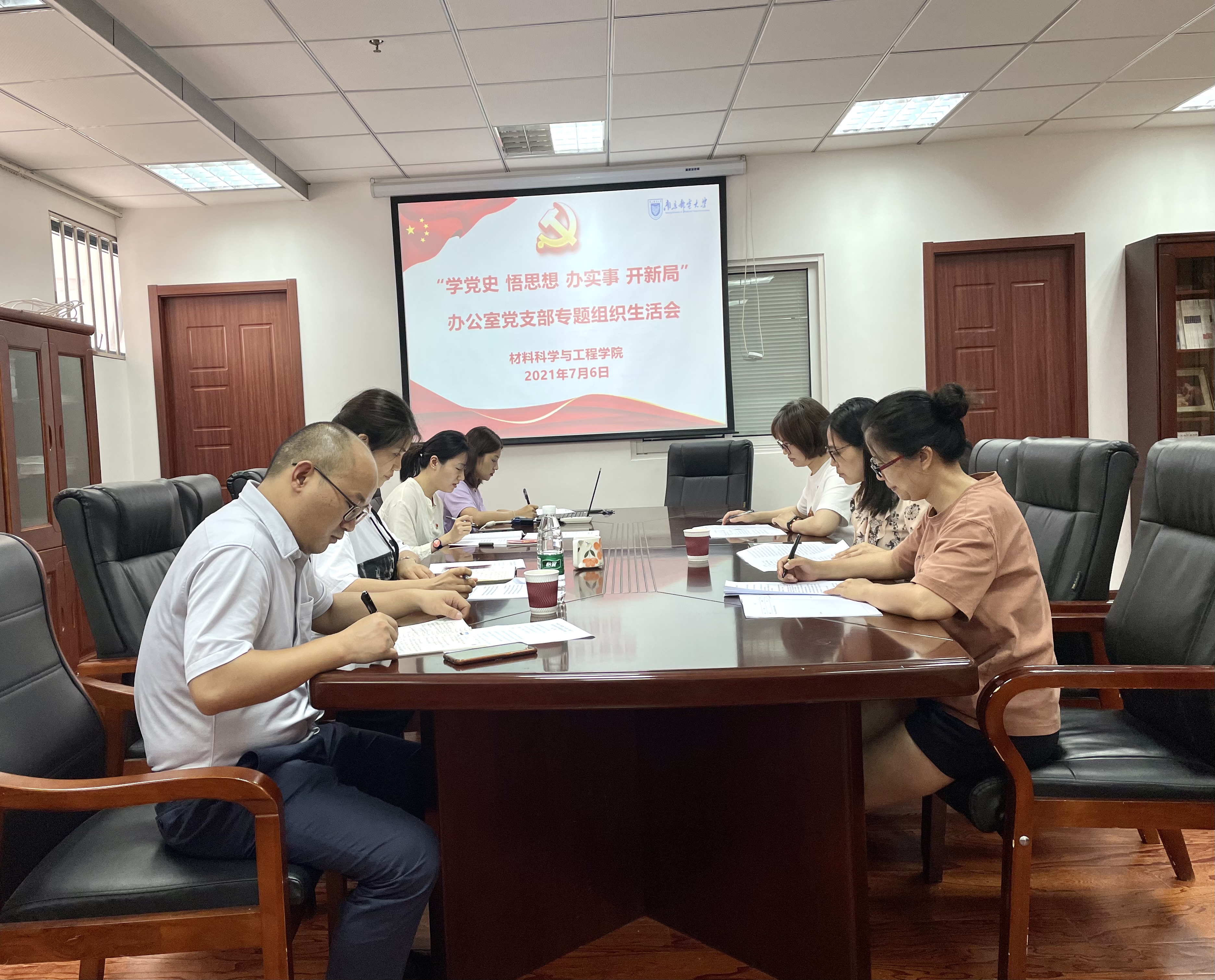 支部书记王思远传达了省委党史学习教育领导小组关于召开专题组织生活会的通知要求,对办公室党支部专题组织生活会开展准备情况进行了汇报。接着,汇报了支部上半年工作情况特别是开展党史学习教育情况,通报党支部委员会检视问题情况。随后,开展批评和自我批评。支部党员同志们逐一发言,围绕学习习近平总书记在庆祝中国共产党成立100周年大会上的重要讲话、习近平新时代中国特色社会主义思想和党中央指定党史学习材料的情况,对照党史学习教育目标要求,自查存在的差距和不足,结合学习工作实际和履职尽责发挥党员先锋模范作用情况,作个人对照检查。支部同志做到了相互批评出于公心、开门见山,本着“开诚布公、一针见血”的态度,不回避,不遮掩问题,实事求是认真查摆。