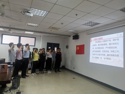 首先,在建党100周年之际,在党旗面前,材料化学支部全体党员同志在支部书记黄镇东同志带领下重温了入党誓词。宣誓过程中,庄重神圣的誓词,铿锵有力的宣誓声,体现了全体党员同志对党的无限忠诚与热爱和为党的事业奋斗终身的坚强决心。