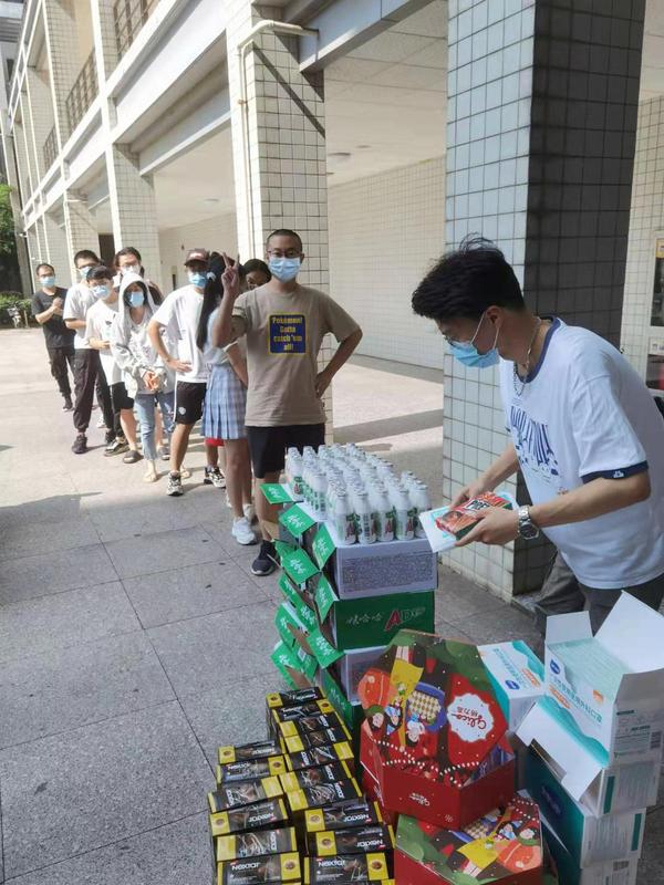2021年8月5日下午,轮盘游戏 2018级考研慰问活动在教2-100举行,轮盘游戏 2018级辅导员、2018级各班班长携带考研和防疫物资,为近100名考研留校学子进行发放,留校学生全体参加此次慰问活动。
