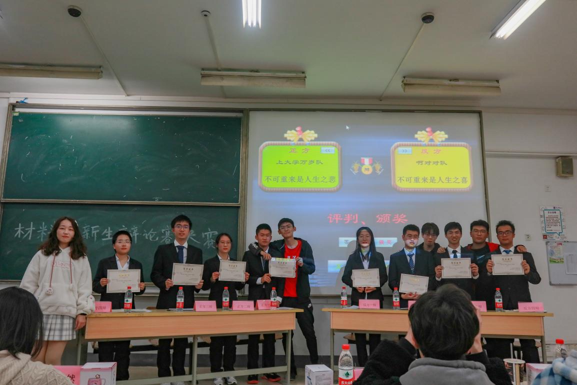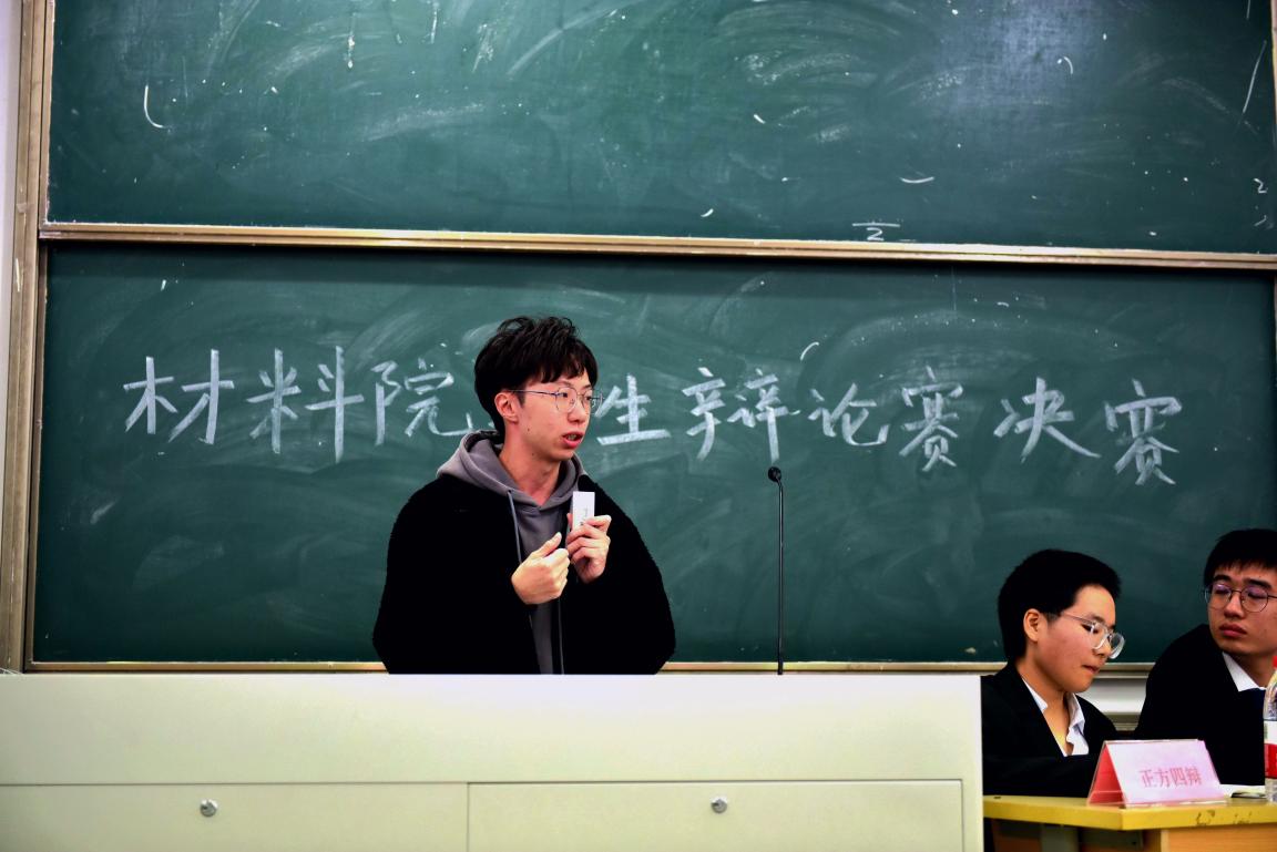 辩论队代表余培烁上台做点评与总结时,他说到“希望延续材料院辩论队的荣光”。在此,恭喜反方获得辩论赛决赛胜利,希望胜者不骄,败者不馁,总结经验,再接再厉,共同为材料院辩论队的明天努力奋斗。