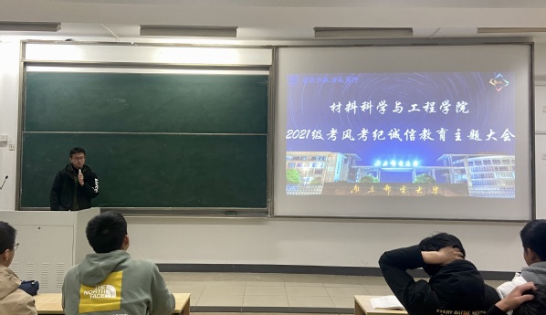 2021年12月9日,轮盘游戏 2021级本科生在教3-300召开了以考风考纪诚信教育主题大会,大会由2021级辅导员王森主持。