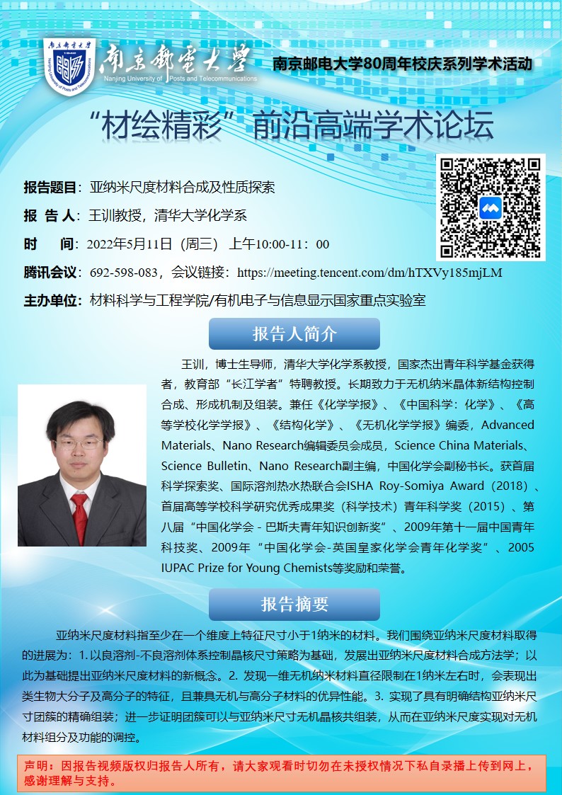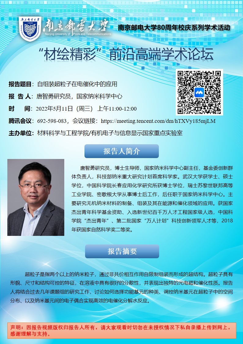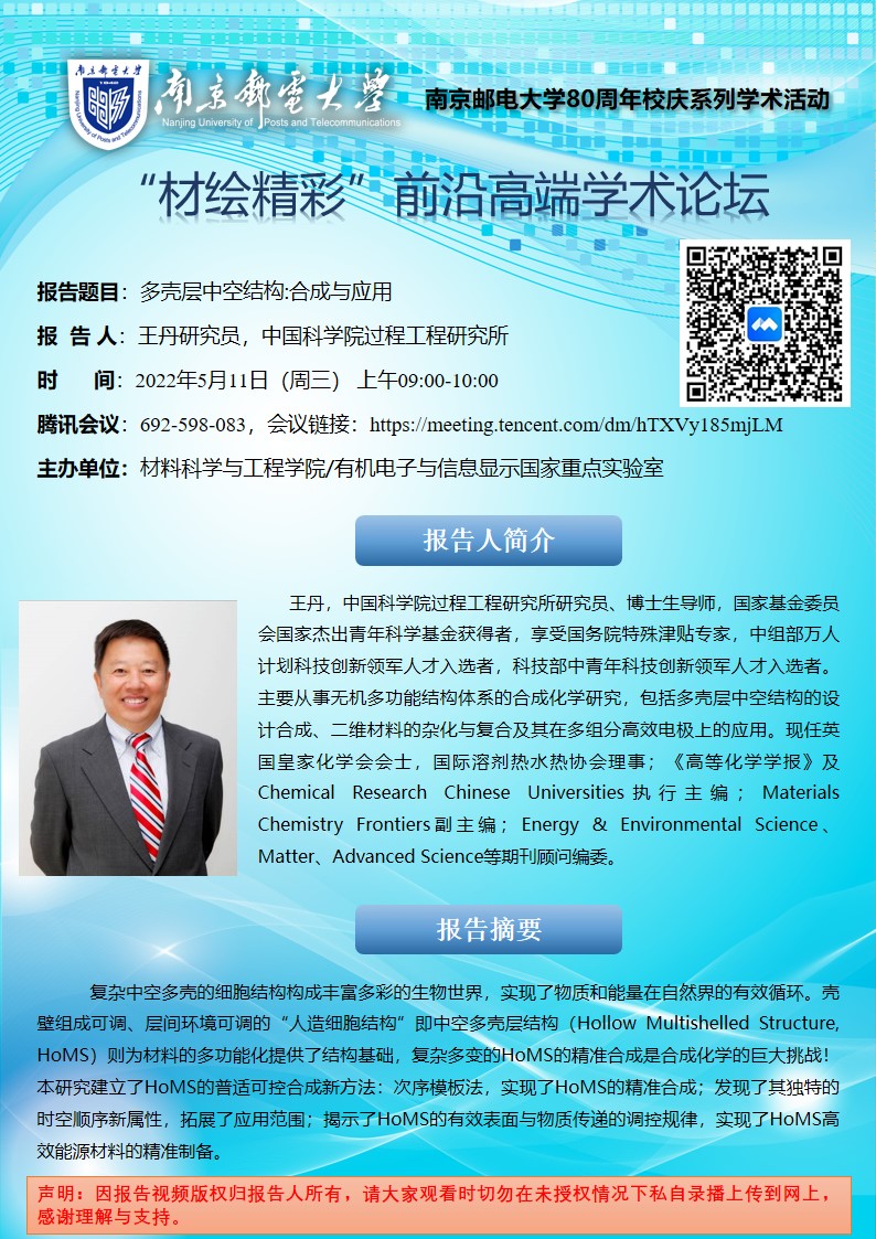 中科院过程工程研究所王丹研究员&清华大学王训教授&国家纳米科学中心唐智勇研究员学术报告