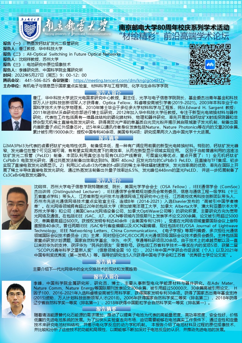 华中科技大学唐江教授&苏州大学沈纲祥教授&中国科轮盘游戏金属研究所李峰教授学术报告