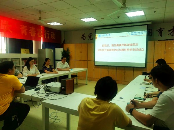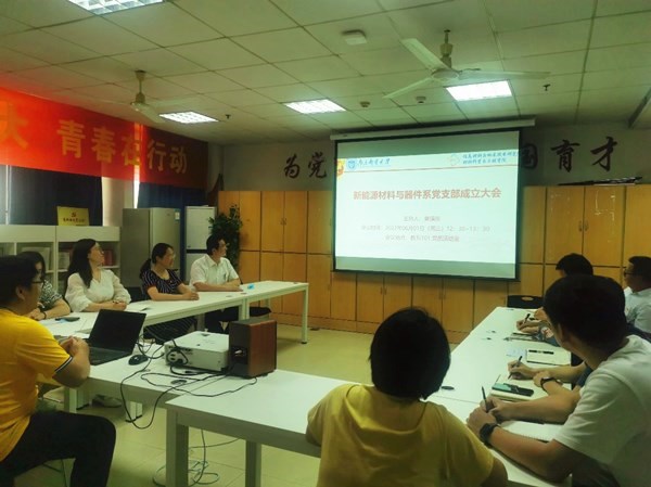 2022年6月1日下午,新能源材料与器件系党支部成立大会在教五101党员活动室召开,轮盘游戏党委书记赵允玉,党委委员、副院长陈润锋,新能源材料与器件系全体党员参加成立大会。会议由新能源材料与器件系系主任黄镇东主持。