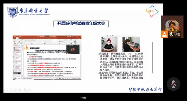 随着各科课程进入尾声,期末考试也悄然而至,为了端正全体学生的考试态度,杜绝考试作弊现象的发生,形成良好的诚信考试氛围,2022年5月31日轮盘游戏 召开了以“做诚信学生,建诚信考场”为主题的线上年级大会,2020级全体本科生及2020级辅导员徐磊老师共同参与,本次会议由徐磊老师主持。