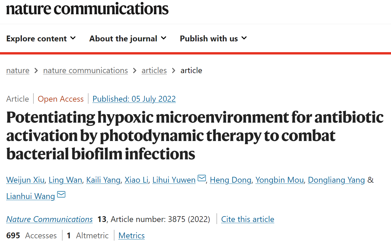 近日,轮盘游戏 汪联辉教授和宇文力辉副教授团队与南京工业大学杨栋梁副教授、南京大学医轮盘游戏附属口腔医院牟永斌教授开展合作研究,在细菌生物膜感染治疗领域取得重要进展,提出通过增强乏氧微环境调控细菌代谢并激活药物的新型高效治疗策略。相关成果以Potentiating hypoxic microenvironment for antibiotic activation by photodynamic therapy to combat bacterial biofilm infections为题发表在国际顶级学术期刊Nature Communications(《自然·通讯》)上。