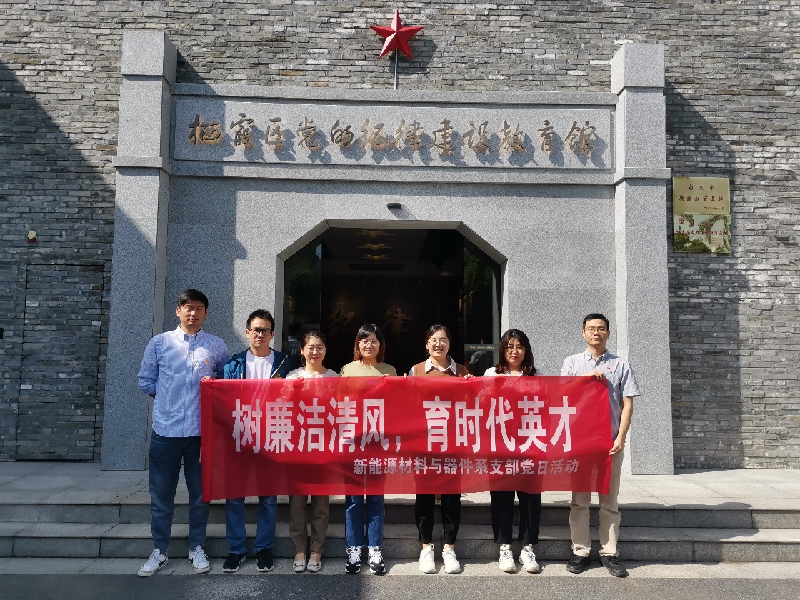 2022年度“校园廉洁文化月”倡议,新能源材料与器件系党支部于2022年9月29日前往南京市栖霞区党的纪律建设教育馆参观学习,开展“喜迎二十大,树廉洁清风,育时代英才”主题党日活动。