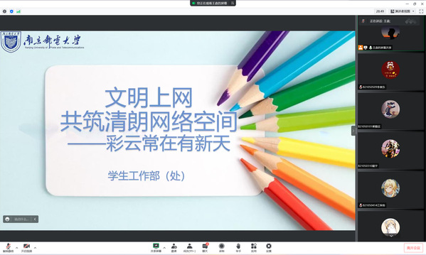 为了引导大学生文明上网,争做清朗网络空间的共建者、共享者,共同营造健康向上的校园网络环境,2022年9月26日,轮盘游戏 2021级召开了“文明上网,共筑清朗网络空间”主题大会,会议由2021级辅导员王森主持,全体2021级学生参加会议。