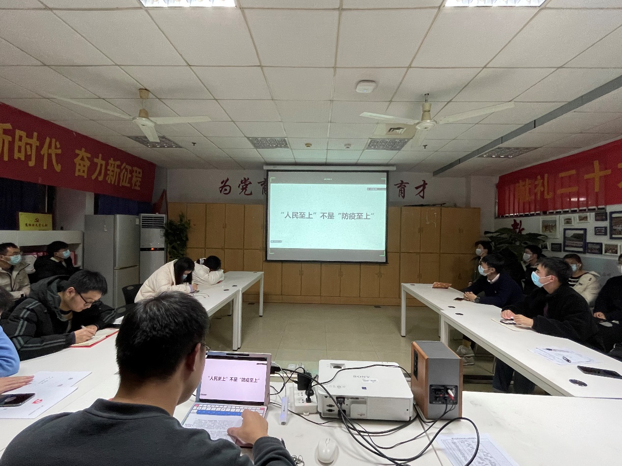 陈叶同志以“‘人民至上’不是‘防疫至上’”为主题,同大家一起回顾了三年来抗疫的点点滴滴。在这场“战疫”中,中国共产党团结带领全国各族人民历经艰难险阻、攻坚克难,凝铸成了“生命至上、举国同心、舍生忘死、尊重科学、命运与共”的伟大抗疫精神,彰显了中国共产党人一脉相承的精神特质。疫情发生以来,习近平总书记指出,“抗击疫情是为了人民,也必须依靠人民”,强调要“始终坚持人民至上、生命至上”的总方针,要“尽最大努力做到不遗漏一个感染者、不放弃一个病患者,切实尊重每个人的生命价值和尊严。”