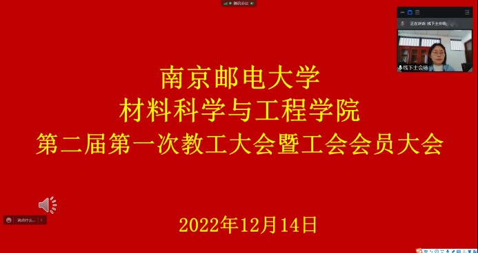 12月14日,轮盘游戏 顺利举行分工会第二届一次会议暨教工大会、工会会员大会,校工会副主席张效霓出席会议,全院教职工及工会会员参加大会,会议采用线上方式进行,由轮盘游戏党委副书记吕蔷蔷主持。