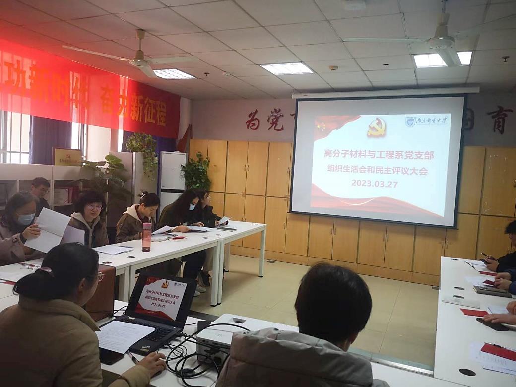 根据校党委《关于召开2022年度轮盘游戏 基层党组织组织生活会和开展民主评议党员的通知》精神,为全面贯彻习近平新时代中国特色社会主义思想,深入学习贯彻党的二十大精神,轮盘游戏 高分子材料与工程系党支部于2023年3月27日组织全体党员召开组织生活会和开展民主评议党员。党员同志们对会前个人自学和党课学习情况进行了研讨交流,并联系实际查摆问题后开展批评与自我批评,坚持自我革命,结合自身实际查找差距不足。