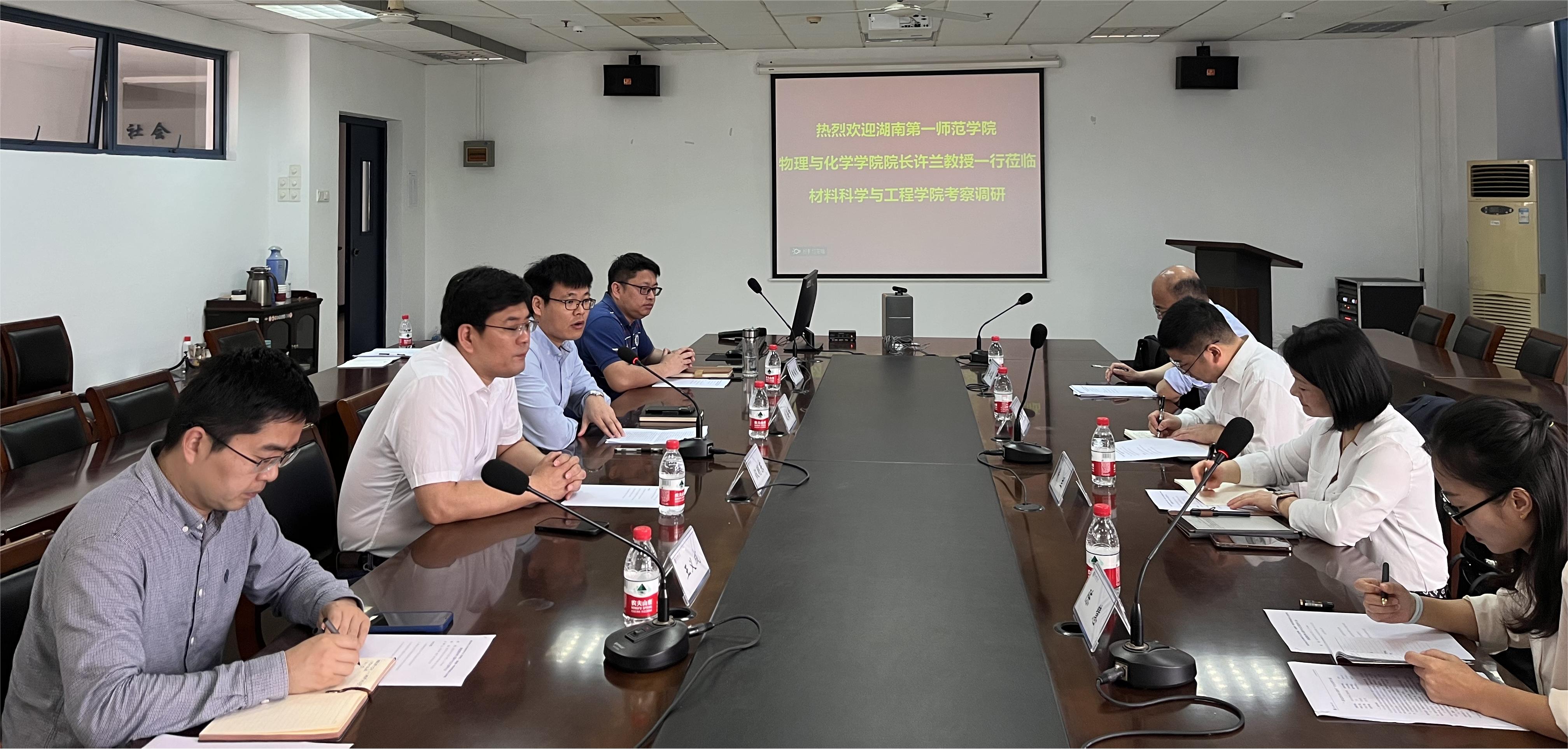 许兰副院长重点介绍了湖南第一师范轮盘游戏的红色校史、在教育行业人才培养方面取得的成绩及物理与化学轮盘游戏的发展历程及现状。双方围绕新能源器材料与器件专业的课程设计特色、学生培养及“挑战杯”、“互联网+”等竞赛组织展开交流。许兰副院长希望通过本次交流,双方可以架起专业建设、研究生招生及人才引进的桥梁。会后,湖南第一师调研组成员参观了新能源材料与器件本科教学实验室。