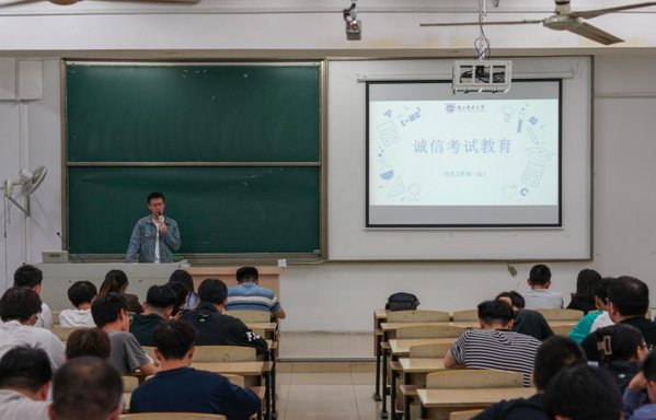 王森老师向学生发出“诚信考试、杜绝作弊”的倡议,要求同学们要认真复习备考,以积极自信的态度迎接考试。并强调了诚信的必要性,同学们要诚实守信,不要抱有侥幸心理。此外,王老师向同学们阐述了大学生诚信资助的意义及重要性,以具体的学生资助失信案例切入,揭露失信学生申报助学金的危害性。同时,王老师讲述了当前国家大学生各项资助政策和资助力度,让同学们深刻感受到国家一直在困难学生的求学道路上保驾护航,希望同学们能够实事求是、诚实受助。
