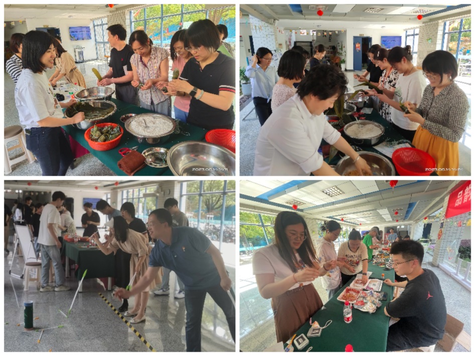 本次活动设“端午习俗问答”、“包粽子”、“投壶”、“自制香囊/五彩绳”四个环节,师生党员通过游园活动的形式参与到各个项目当中,切身感受传统习俗中所蕴含的文化底蕴,活动现场气氛热闹非凡,大家互相学习包粽子的手法,交流传统节日端午节的来源和民俗习惯、伟大诗人屈原的瑰丽诗篇等文化内涵,丰富充实知识的同时,也更加了解传统文化习俗的魅力。