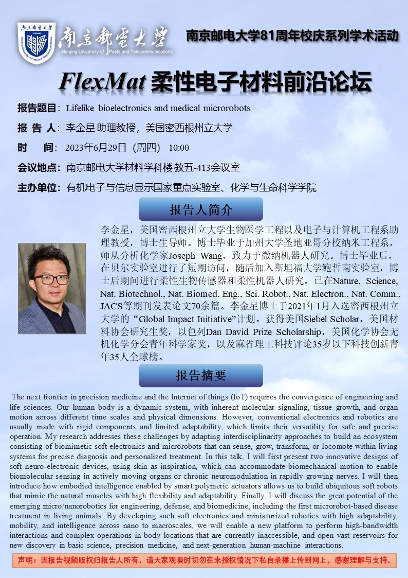 FlexMat柔性电子材料前沿论坛: 美国密西根州立大学 李金星博士