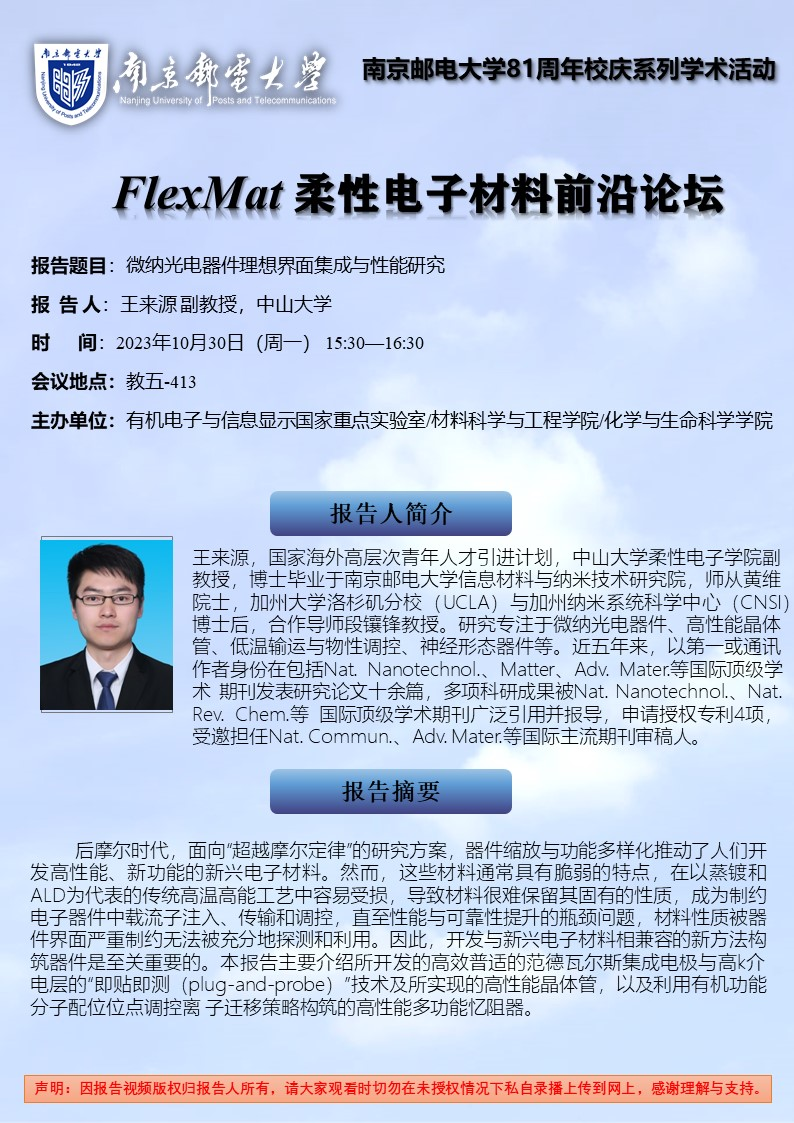 FlexMat柔性电子材料前沿论坛:中山大学 王来源副教授