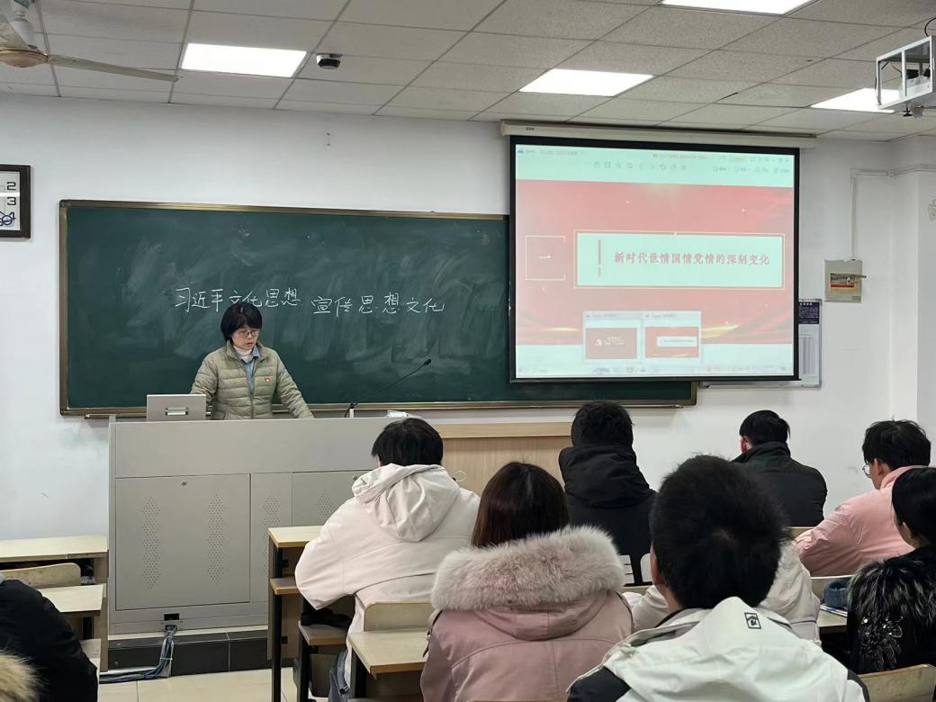 2023年12月1日上午,轮盘游戏 2023研究生党支部在教2-118开展“深入学习贯彻党的二十大精神”专题党课,内容为传达全国宣传思想文化工作会议精神,学习习近平文化思想。轮盘游戏 党委副书记吕蔷蔷老师主讲,支部党员参加党课学习。