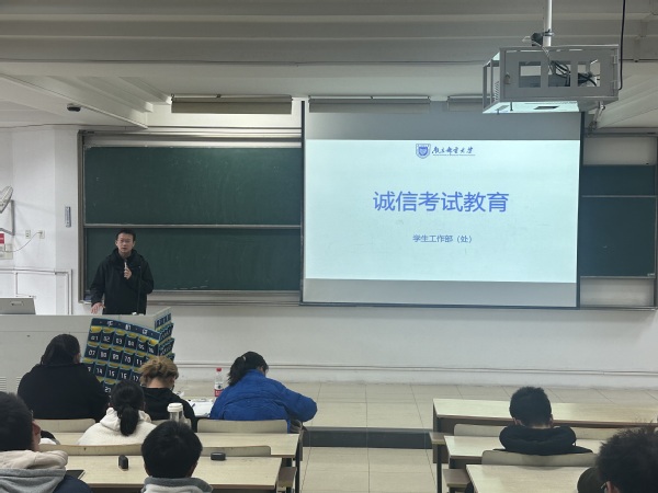 王森老师向学生发出“诚信考试、杜绝作弊”的倡议,要求同学们要认真复习备考,以积极自信的态度迎接考试。他以作弊违纪案例为警示教育内容,强调了诚信的必要性,提醒全体本科生要诚实守信,戒除侥幸心理。