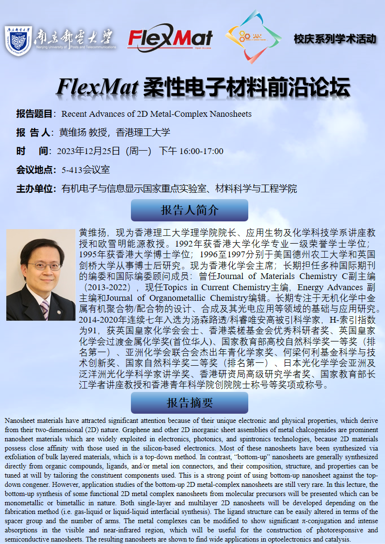 FlexMat柔性电子材料前沿论坛: 香港理工大学 黄维扬教授