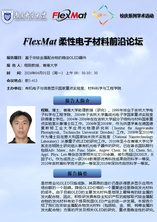 FlexMat柔性电子材料前沿论坛:香港大学 程刚教授