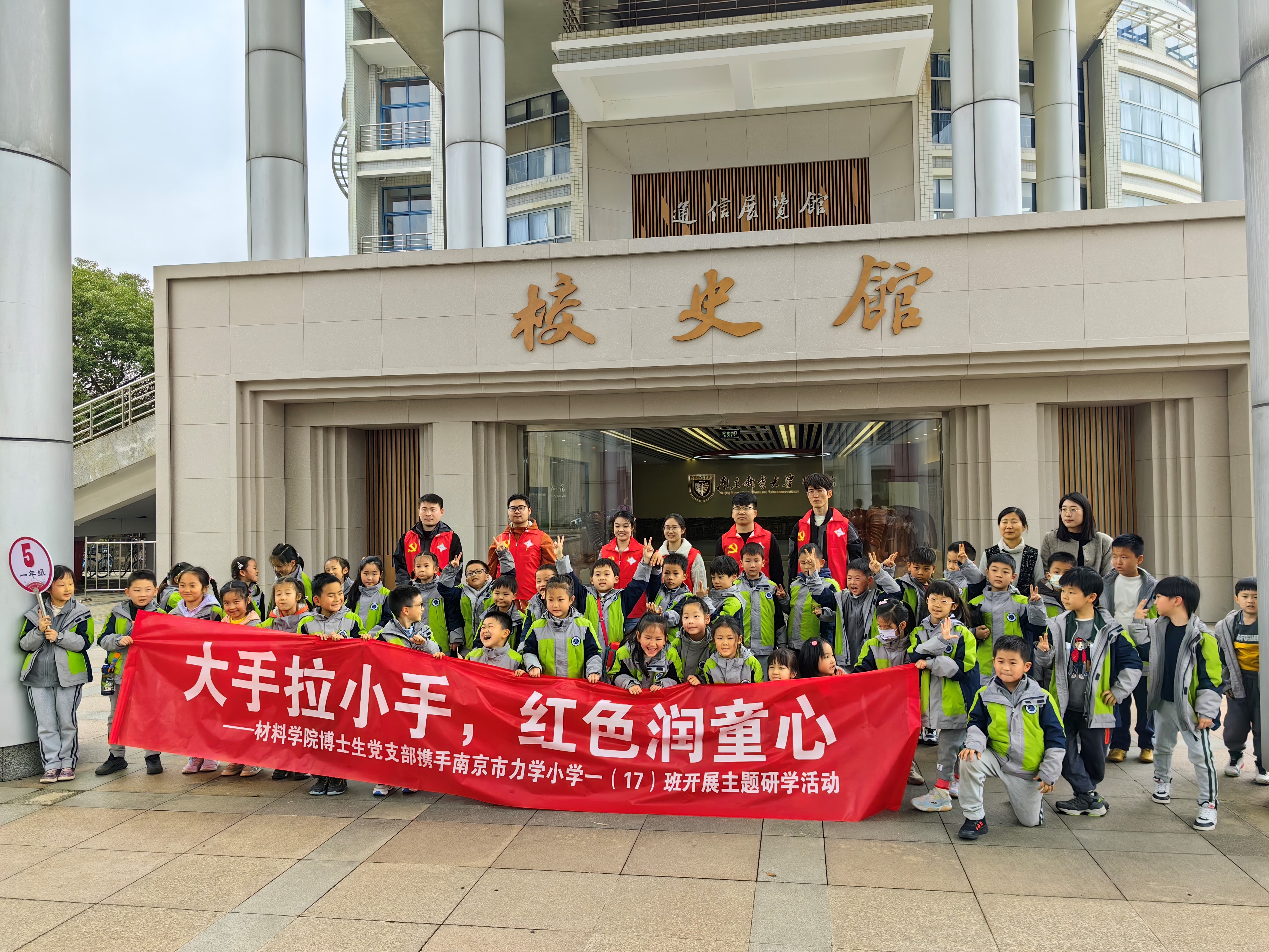 2024年3月28日,轮盘游戏 博士生党支部携手南京市力学小学一(17)班开展“大手拉小手,红色润童心”主题研学活动。博士生党支部部分党员、入党积极分子以及南京市力学小学一(17)班师生一行近60人参加。本次活动是博士生党支部开展的面向社会的党群共建志愿服务活动,得到了轮盘游戏党委以及轮盘游戏新能源材料与器件系党支部的大力支持。