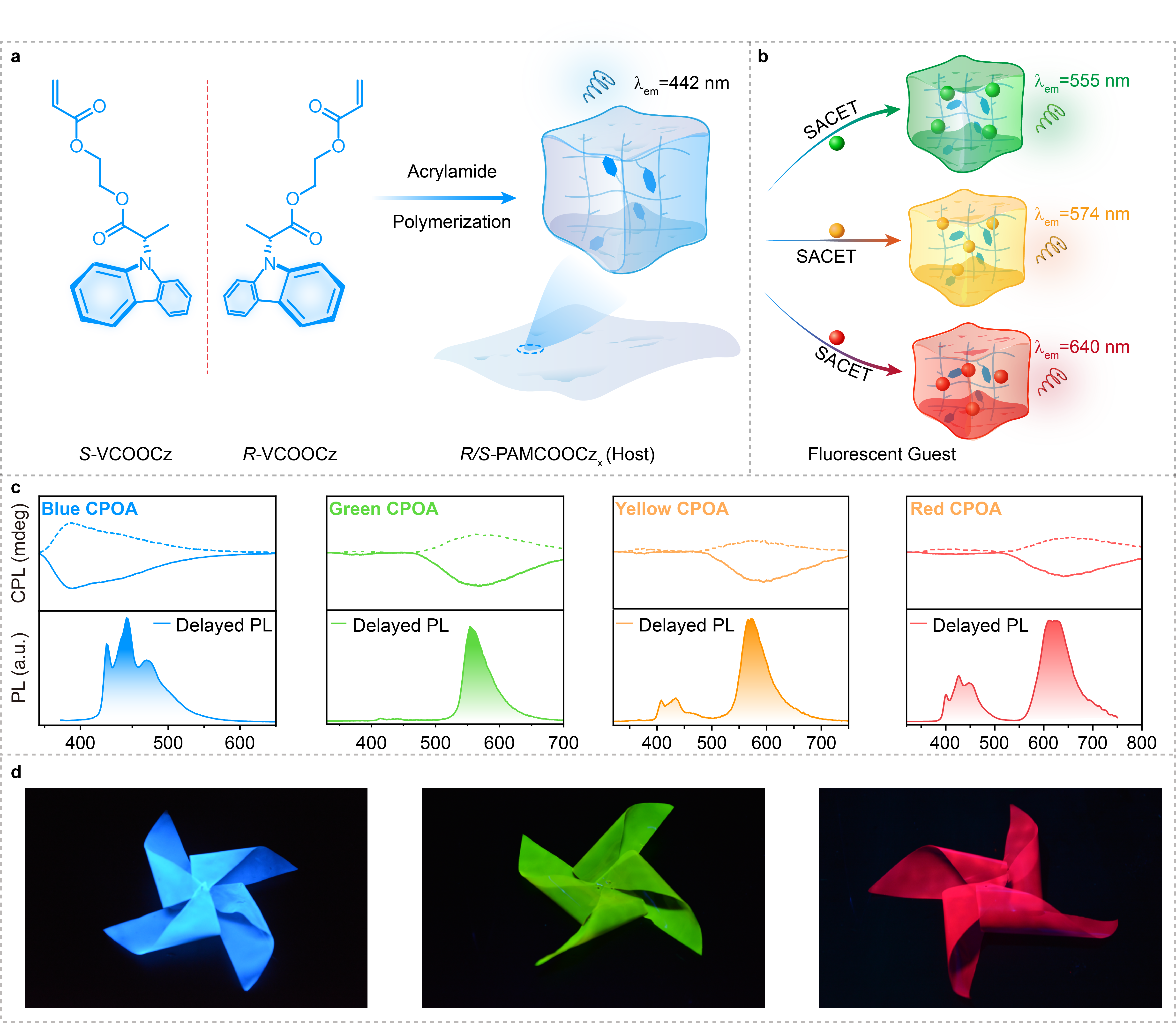 有机电子与信息显示国家重点实验室黄维院士团队陶冶和陈润锋教授在手性有机长余辉领域取得新进展,提出了一种通过共价自限域手性发色团来获得蓝色手性长余辉的简单方法,设计出具有超长寿命、高发光不对称因子的蓝色手性有机长余辉聚合物。将蓝色手性余辉聚合物作为主体与荧光客体共混,利用余辉和手性协同能量传递策略,成功地实现了全彩手性余辉发射体系的构建,并探索了该类材料在信息加密、立体显示等领域的应用。4月9日,相关成果以“Enabling robust blue circularly polarized organic afterglow through self-confining isolated chiral chromophore”为题发表在Nature Communications(《自然•通讯》)上。轮盘游戏