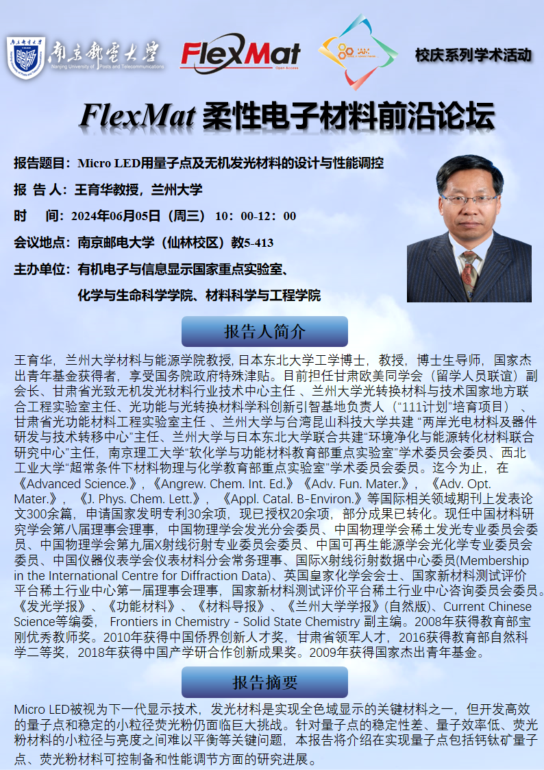 FlexMat柔性电子材料前沿论坛: 兰州大学 王育华教授