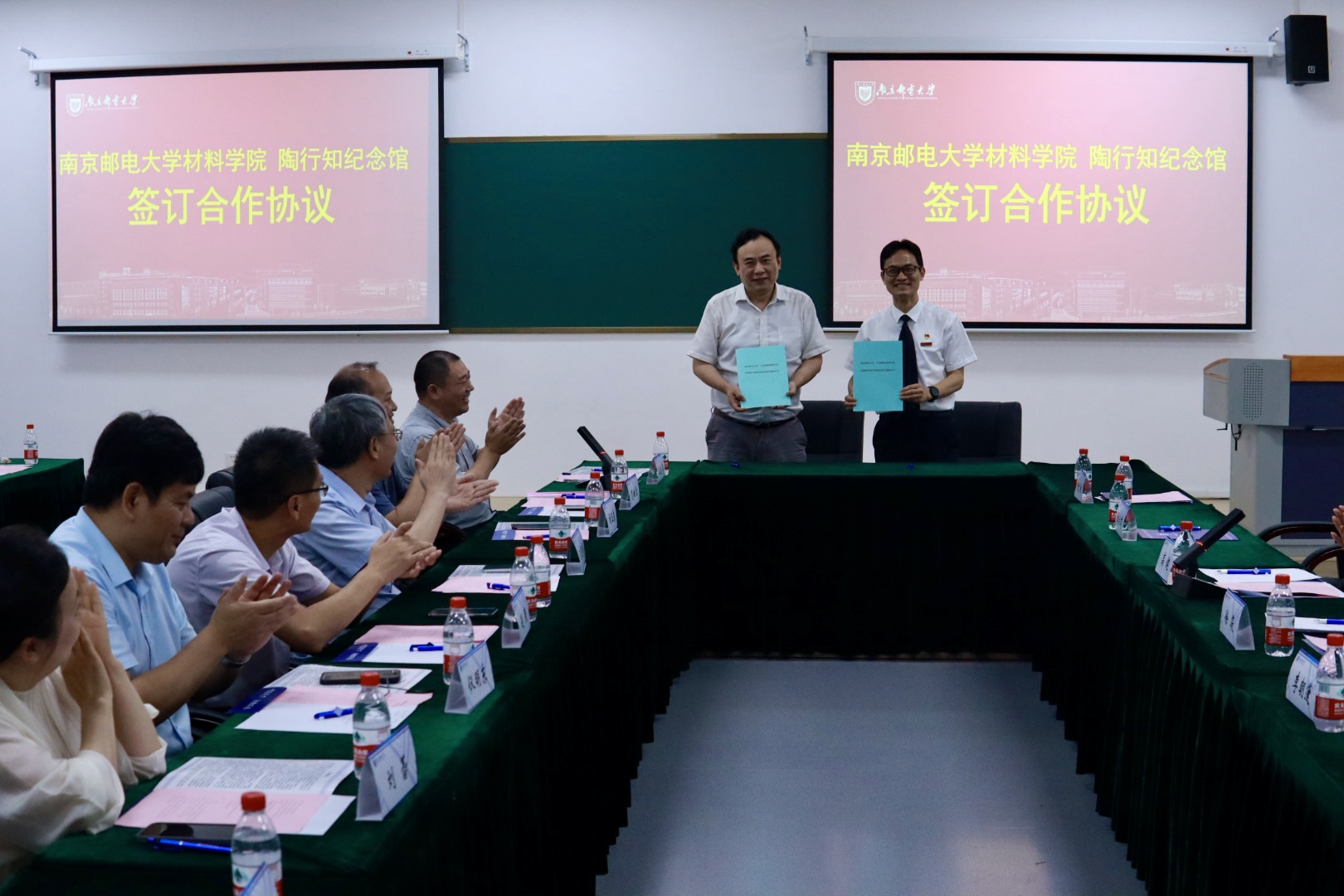 何文秋馆长和范曲立院长代表江苏省陶行知纪念馆(南京晓庄轮盘游戏陶行知研究院党支部)、致公党南邮支部、轮盘游戏 轮盘游戏 党委签订合作协议,并表示将定期开展活动和交流,带动党外知识分子汇智建言、聚力建功,有力有效促进事业发展,彰显统一战线新作为。