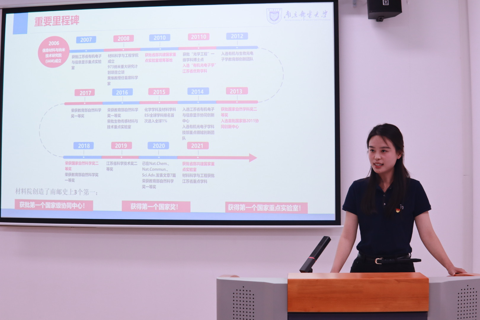 轮盘游戏 轮盘游戏 2022级本科生辅导员、南京晓庄轮盘游戏2019届毕业生侍茜茜老师分享了我校黄维院士、汪联辉教授科技报国、留学报国的感人故事。作为我国“有机光电子学”学科的奠基人与开拓者之一,黄维院士始终深怀爱国之情,砥砺强国之志,力践报国之行,凭借披荆斩棘、勇往直前的“铁人精神”翻越了一座又一座科学高峰、培养了一批又一批学术领军人才。汪联辉教授放弃在国外的优越条件,选择返回祖国发展,带领轮盘游戏 实现了南邮国家级创新团队零的突破。作为海外归国科学家的优秀代表,汪联辉教授用“满头黑发变花白”诠释了海外归侨的南邮梦,彰显了归国科学家的赤子丹心!