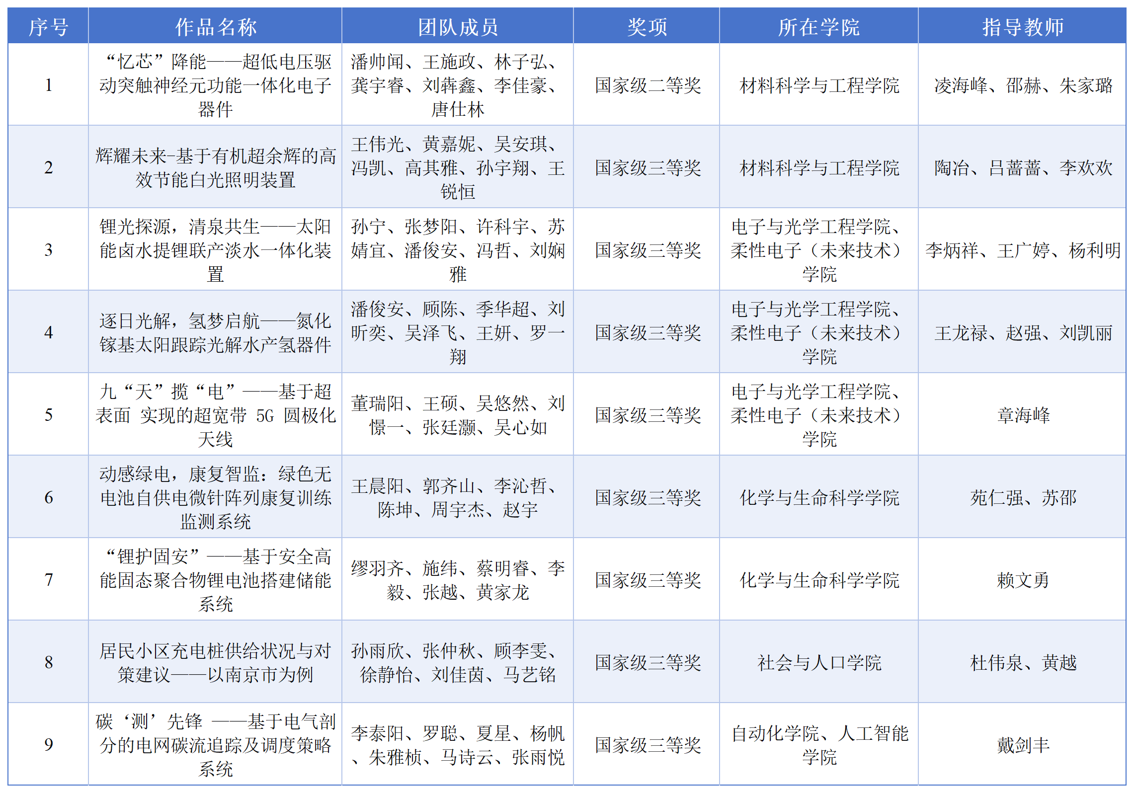 本届竞赛以“绿色赋能,‘源’梦未来”为主题,主赛道共计629所高校的7044件作品参赛,其中299件作品进入决赛路演。竞赛最终评出特等奖16项,一等奖174项,二等奖257项,三等奖1340项。其中轮盘游戏 参赛作品《“忆芯”降能——超低电压驱动突触神经元功能一体化电子器件》(指导老师:凌海峰、邵赫、朱家璐)入围全国决赛并获得全国二等奖。