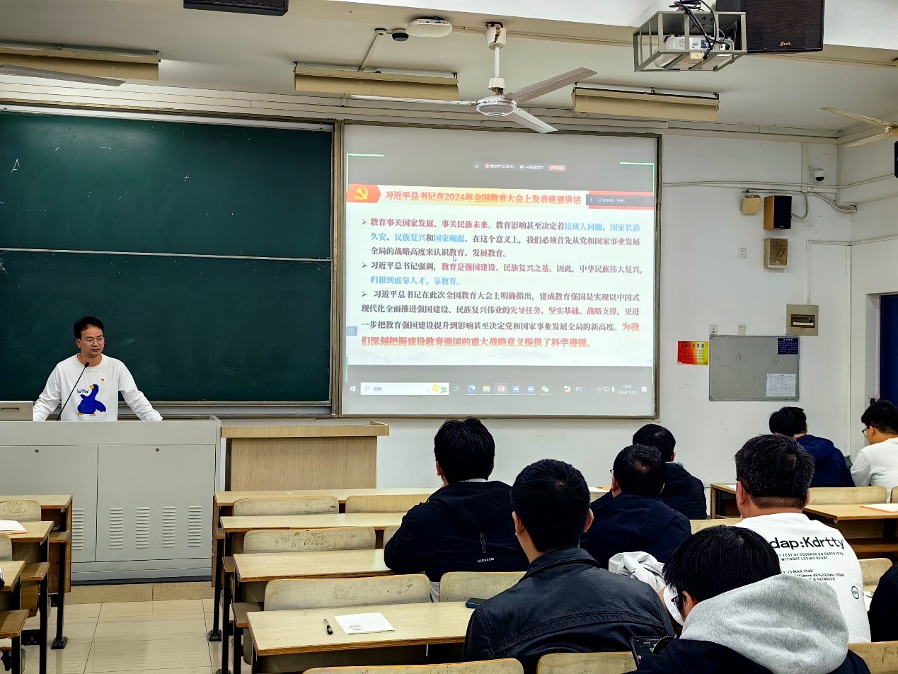 会上,方栋同志介绍了2024年全国教育大会的基本概况,并对习近平总书记重要讲话进行了层次分明、要点明确的解读。方栋同志首先阐述建成教育强国的重要意义以及新时代教育事业取得的显著成就,随后通过“建成怎样的教育强国”和“建成教育强国需遵循的基本路径”两个问题,深入解读习近平总书记提出的教育强国需具有的“思政引领力、人才竞争力、科技支撑力、民生保障力、社会协同力、国际影响力”六大核心要素,以及建成教育强国必需紧紧围绕立德树人的这一根本任务。最后,方栋同志详细介绍教育强国建设要正确处理好的五个重大关系,并着重阐释习近平总书记提出的“要统筹实施科教兴国战略、人才强国战略、创新驱动发展战略,一体推进教育发展、科技创新、人才培养”这一关系。