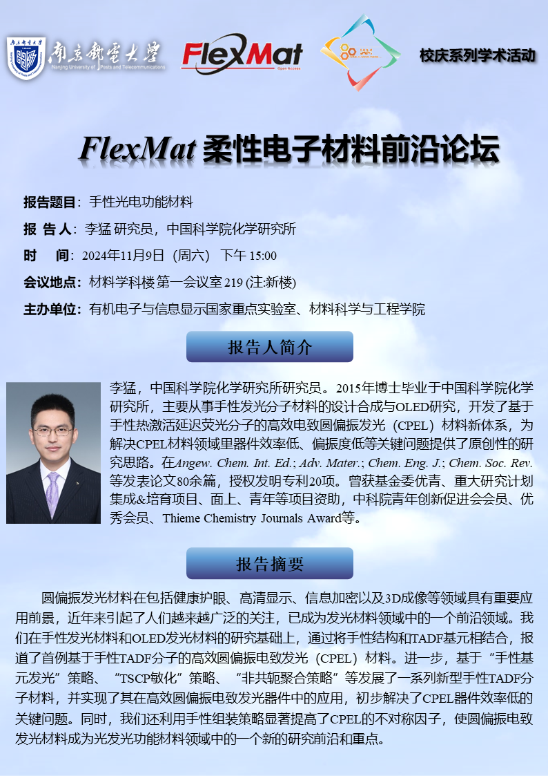 FlexMat柔性电子材料前沿论坛:中国科轮盘游戏化学研究所 李猛 研究员
