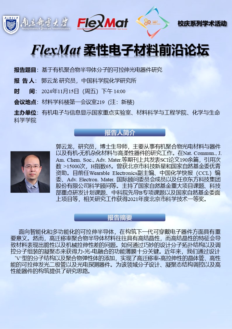 FlexMat柔性电子材料前沿论坛:中国科轮盘游戏化学研究所 郭云龙 研究员