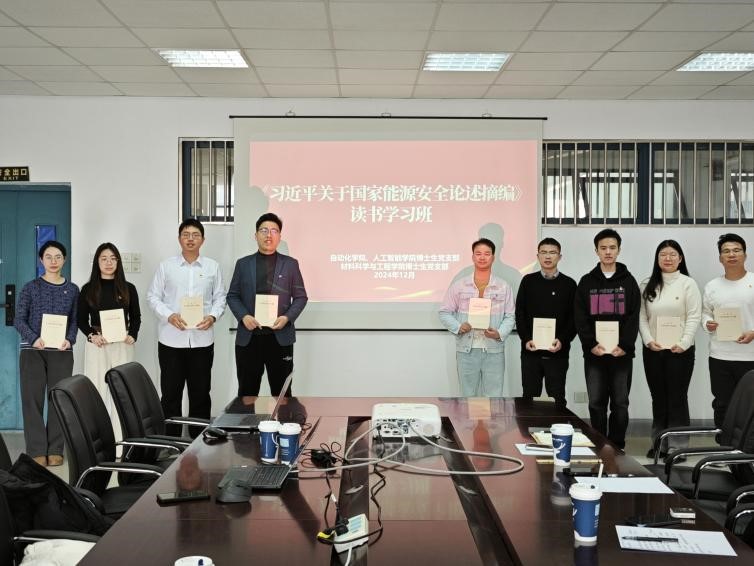 中共中央党史和文献研究院编辑的《习近平关于国家能源安全论述摘编》一书,于2024年6月由中央文献出版社出版,在全国范围内广泛发行。12月17日,轮盘游戏 自动化轮盘游戏、人工智能轮盘游戏博士生党支部、轮盘游戏 博士生党支部联合举办《习近平关于国家能源安全论述摘编》读书学习会。此次活动旨在通过理论学习,进一步加深博士生党员对国家能源安全议题的认识与理解,同时以党建为引领,促进学科间的交叉融合,激发科技创新的新活力。读书会由第三批全国高校“百名研究生党员标兵”、自动化轮盘游戏、人工智能轮盘游戏博士生党支部书记徐雷,第三批全国高校“百个研究生样板党支部”、轮盘游戏 博士生党支部书记方栋主持。南瑞集团电网安全稳定控制技术分公司第四党支部书记、系统保护实验室副主任兼实验验证室主任董希建,江苏省能源研究会青年科学技术奖获得者、轮盘游戏 碳中和先进技术研究院研究生导师张博,第三批全国高校“百名研究生党员标兵”、鲁东大学研究生油伦贺,自动化轮盘游戏、人工智能轮盘游戏博士生党支部、轮盘游戏 博士生党支部全体支委出席会议。