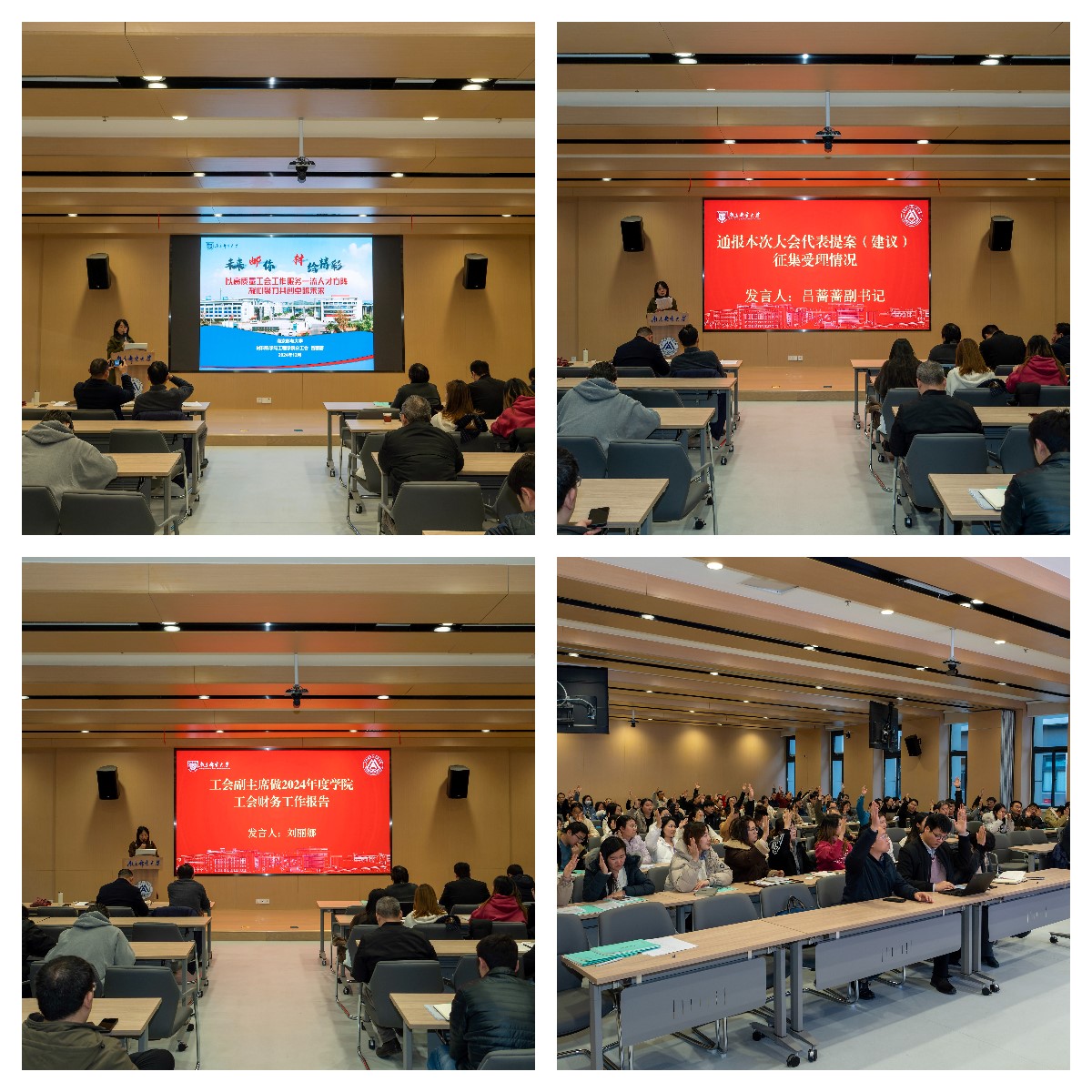 会议在庄严的国歌声中拉开帷幕,吕蔷蔷主席宣读校工会关于大会的批复意见,会议听取轮盘游戏院长范曲立做2024年轮盘游戏工作报告及2025年工作重点,工会主席吕蔷蔷做题为《以高质量工会工作服务一流人才方阵,凝心聚力共创卓越未来》的轮盘游戏2024年工会工作报告,工会副主席刘丽娜做2024年工会财务报告,接着全体与会人员共同讨论轮盘游戏 工作报告、第二届工会委员会工作报告和工会财务工作报告,并表决通过了以上工作报告。分工会副主席吕蔷蔷汇报了上次大会代表提案(建议)处理情况和本次大会代表提案(建议)征集受理情况。随着国际歌曲终,大会圆满落幕。