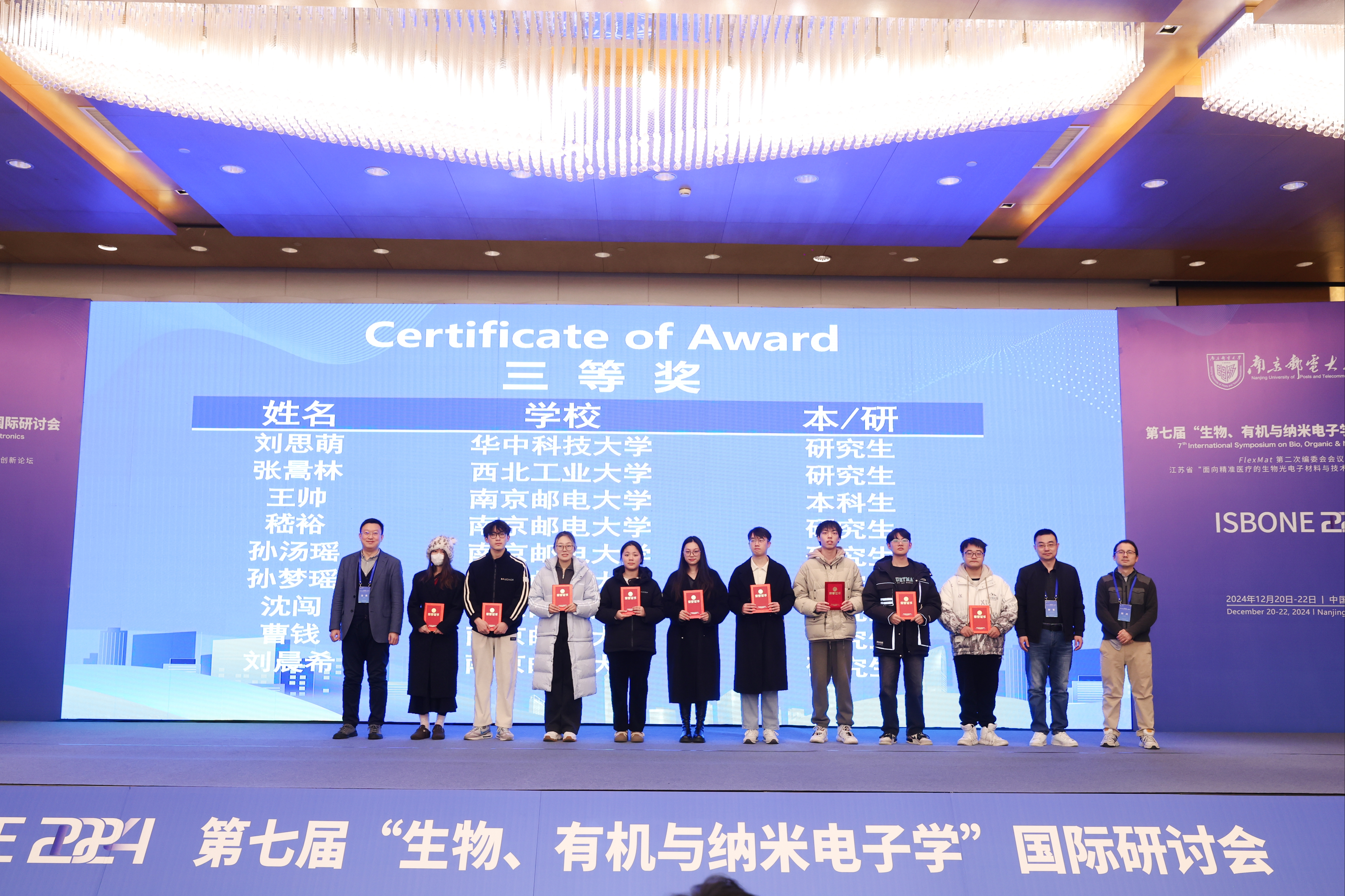 1220日至22日,第七届“生物、有机与纳米电子学”国际研讨会(7th Symposium on Bio, Organic & Nano ElectronicsISBONE 2024)在南京顺利召开。