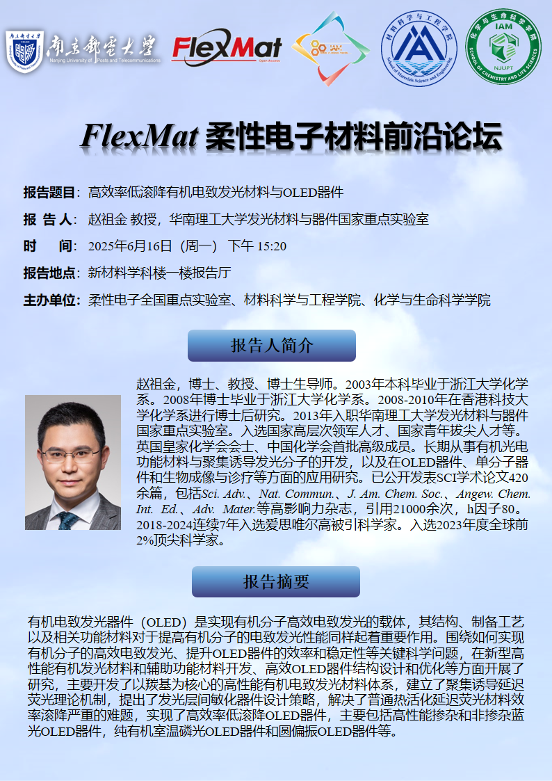 FlexMat柔性电子材料前沿论坛:华南理工大学发光材料与器件国家重点实验室 赵祖金 教授