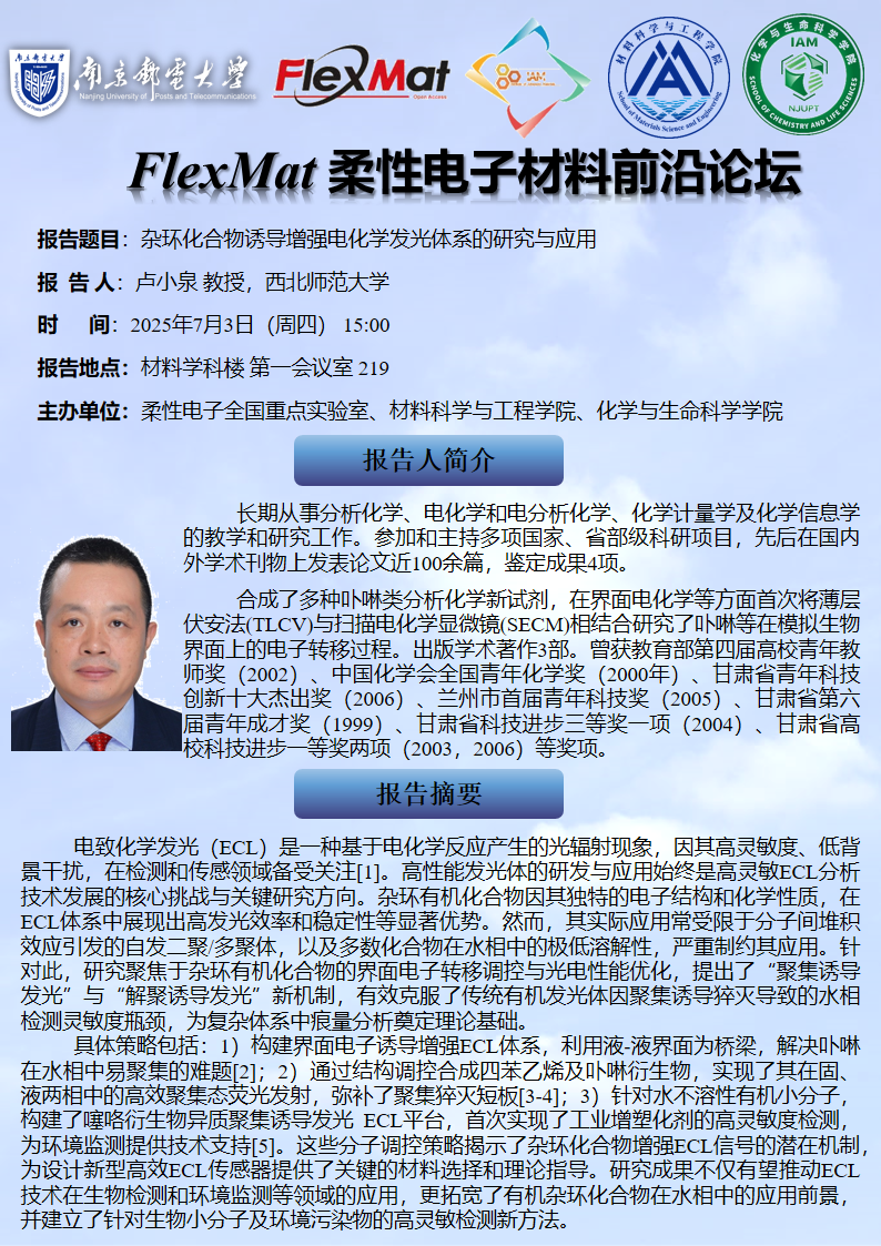 FlexMat柔性电子材料前沿论坛: 西北师范大学 卢小泉 教授