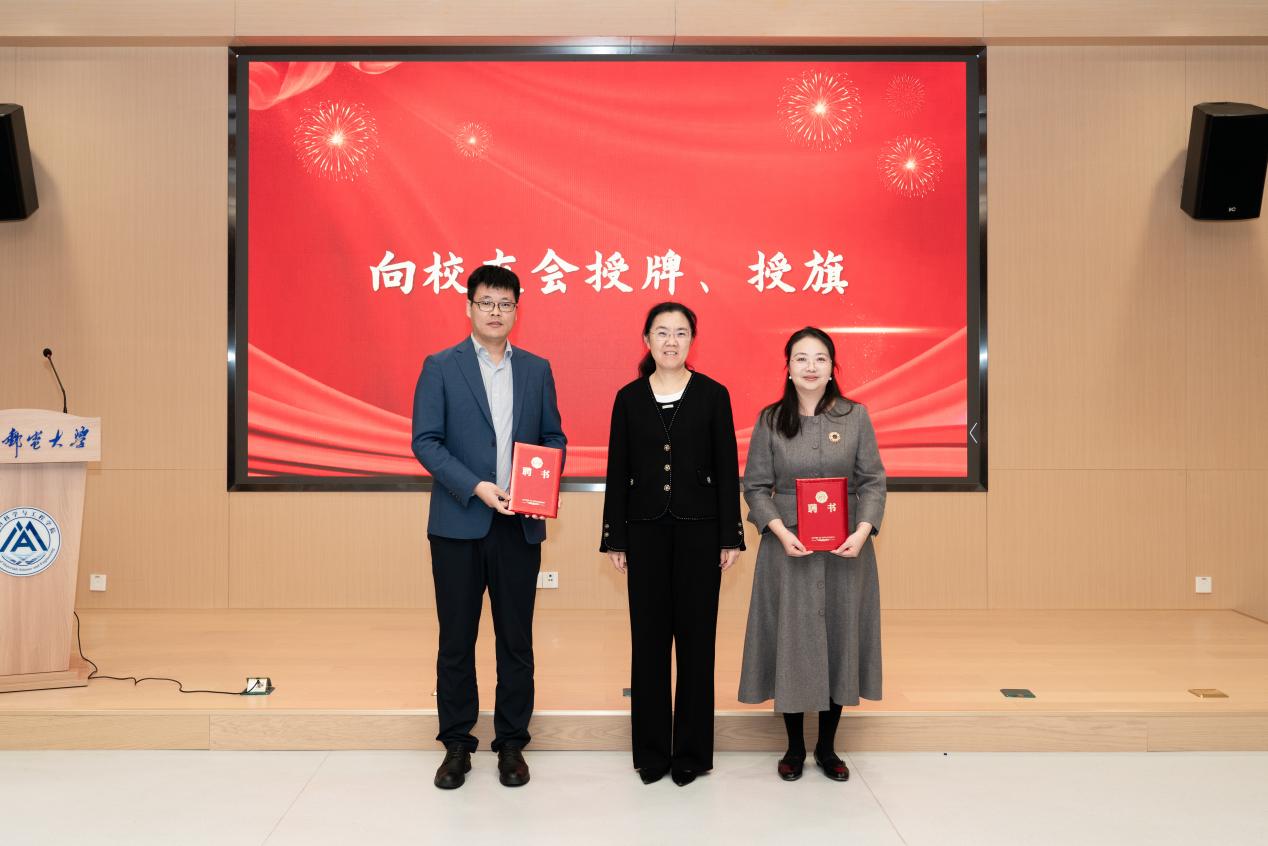 随后,吕蔷蔷做轮盘游戏第一届校友会筹备工作报告。大会审议通过了轮盘游戏第一届校友会组织机构人员建议名单。在热烈的掌声中,校院领导共同为校友会授牌、授旗,并向当选的理事们颁发了聘书。