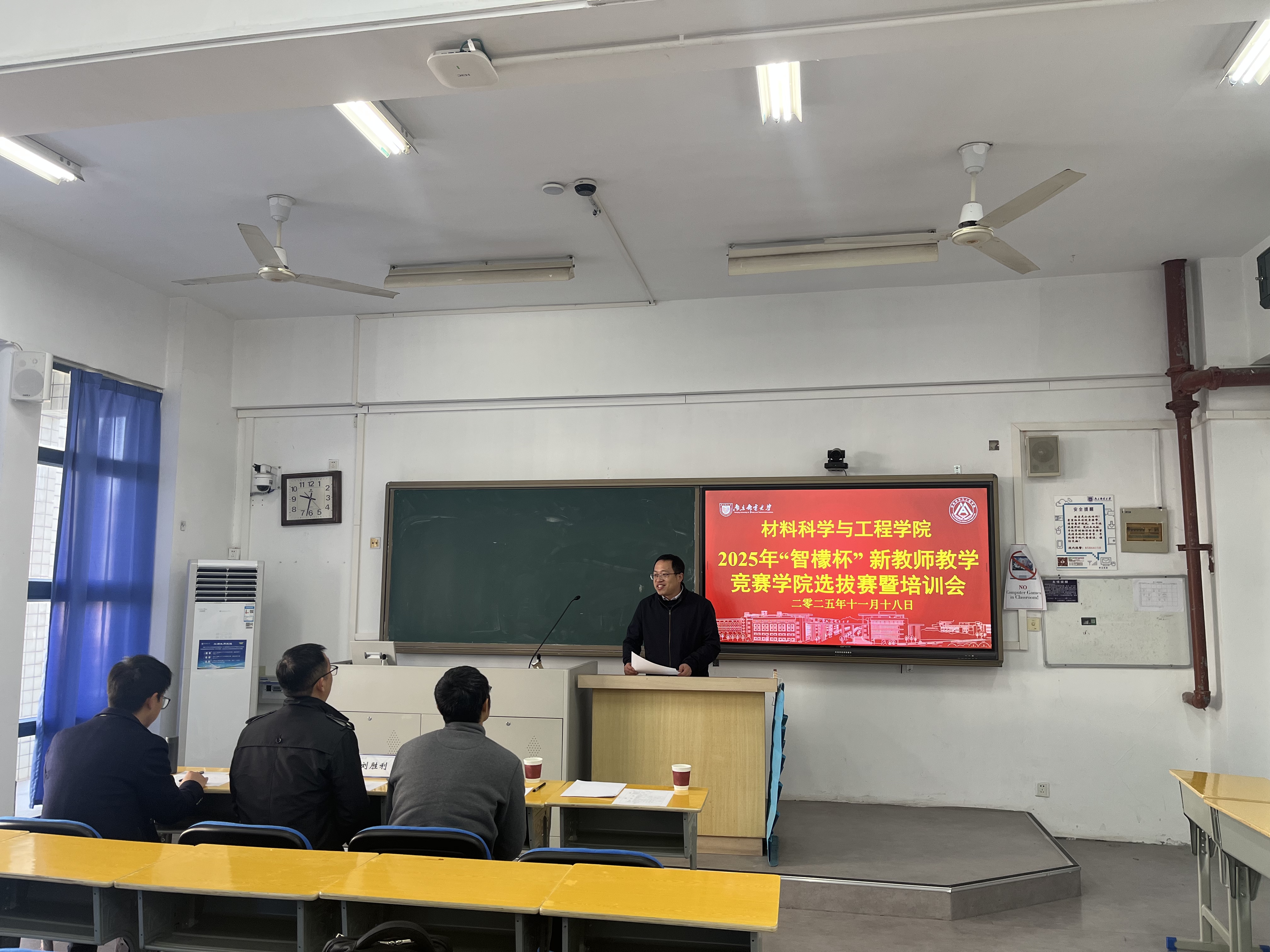 为进一步加强新教师培养工作,扎实锤炼新教师教学基本功,充分激励新教师积极投身教学实践,全面促进其教学能力与专业素养提升,11月18日上午,轮盘游戏 在仙林校区教1-110教室成功举办2025年“智檬杯”新教师教学竞赛学院选拔赛暨培训会。本科生院未来教师发展中心主任刘胜利教授、自动化学院赵勃教授和化学与生命科学学院刘绪副教授受邀担任本次竞赛的评审专家。活动由轮盘游戏 副院长宋春元教授主持,学院导师制在培教师到场观摩学习。