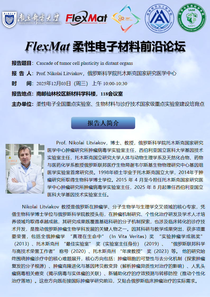 FlexMat柔性电子材料前沿论坛: 俄罗斯科学院托木斯克国家研究医学中心 Prof. Nikolai Litviakov