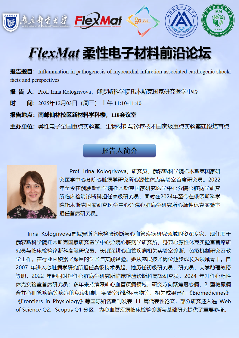 FlexMat柔性电子材料前沿论坛: 俄罗斯科学院托木斯克国家研究医学中心Prof. Irina Kologrivova