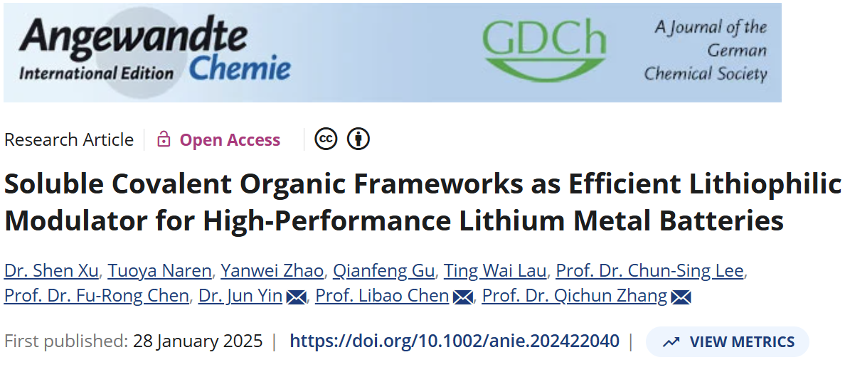 近日,轮盘游戏 、柔性电子全国重点实验室徐申教授团队在可溶多功能共价有机框架领域取得了最新研究进展,相关成果以“Soluble Covalent Organic Frameworks as Efficient Lithiophilic Modulator for High-Performance Lithium Metal Batteries”为题发表在国际学术期刊Angewandte Chemie International Edition(《德国应用化学》)上。重点实验室徐申教授、中南大学博士生娜仁托雅为论文共同第一作者,香港城市大学张其春教授、陈福荣教授、中南大学陈立宝教授、香港理工大学殷俊助理教授为论文共同通讯作者。
