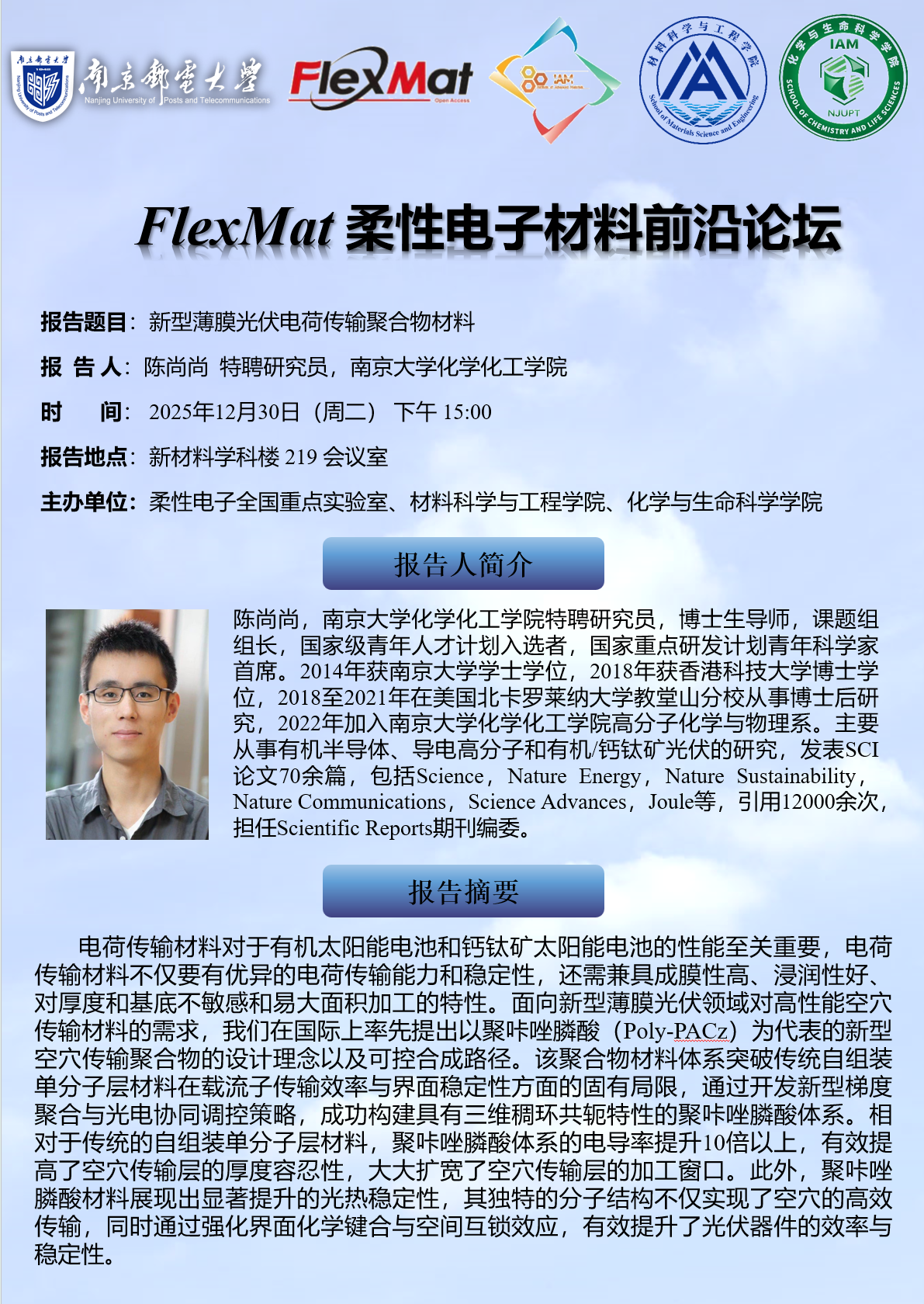 FlexMat柔性电子材料前沿论坛:南京大学 陈尚尚研究员