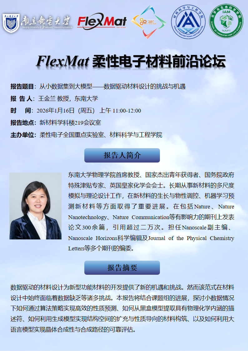 FlexMat柔性电子材料前沿论坛:东南大学 王金兰教授