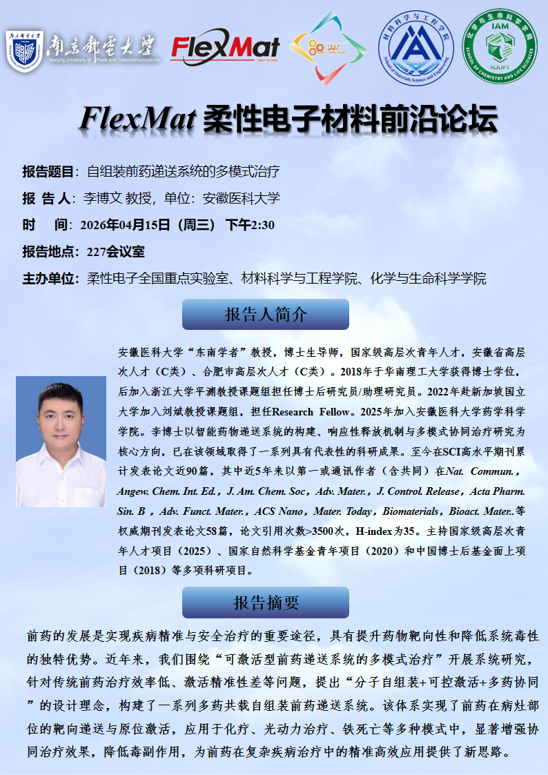 FlexMat柔性电子材料前沿论坛:安徽医科大学 李博文 教授